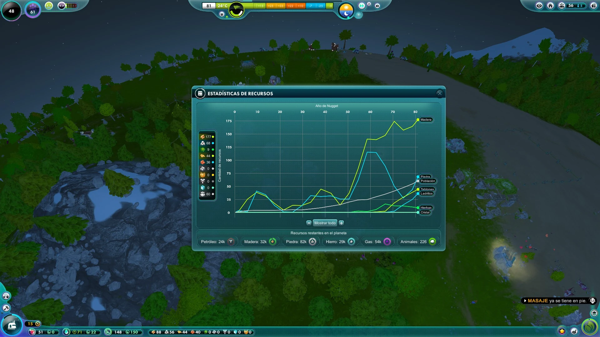 Tendremos que prestar especial atención a los indicadores de polución, de nivel de felicidad de general y de información del crimen, ya que estos actuarán y tendrán consecuencias en mayor o menor medida en la supervivencia de los nuggets y de la propia civilización a grandes rasgos, pues debemos garantizar la comodidad y el bienestar de nuestro pueblo. La subida de temperatura, las invasiones de pueblos vecinos o la introducción del sistema capitalista serán varios de los fenómenos que jugarán en nuestra contra.
