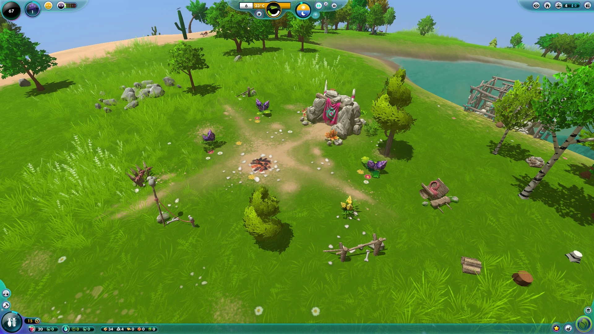 De entre todas las opciones que nos proporciona el juego, destaco especialmente los botones de ‘pausa’ y ‘velocidad’, los cuales nos permiten pausar el tiempo (que no el juego) y adelantar la velocidad a la que transcurren los días, respectivamente. Estas funciones son especialmente útiles para varios escenarios: por ejemplo, hay varios eventos que ponen en peligro la vida de nuestros nuggets en gran medida (ataques de lobos, la caída de meteoritos, o desastres naturales), en los cuales es posible que debamos parar el tiempo para decidir cómo actuar. Asimismo, aumentar la velocidad del tiempo és muy útil para esos momentos de paz y tranquilidad en los que no tengamos nada que hacer.