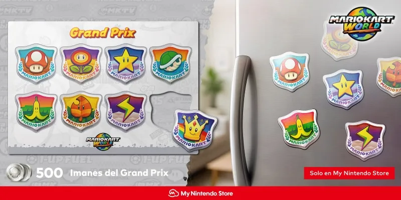 My Nintendo Store dispone de un variado elenco de recompensas físicas que se pueden obtener a partir de los conocidos puntos de platino. Las dos últimas novedades son dos sets de imanes del reciente Mario Kart World, título de lanzamiento de Nintendo Switch 2. Un set de imanes está inspirado en los iconos del modo Grand Prix, mientras que el segundo set de imanes está basado en los iconos del modo supervivencia (y, en este caso, su compra es exclusiva para suscriptores de Nintendo Switch Online).