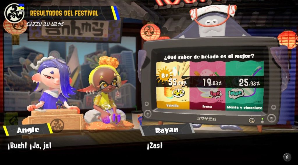 ¡Ya tenemos los resultados del reciente Splatfest! El encarnizado combate enfrentó a 3 sabores de helado: Vainilla, Fresa y Menta y Chocolate.