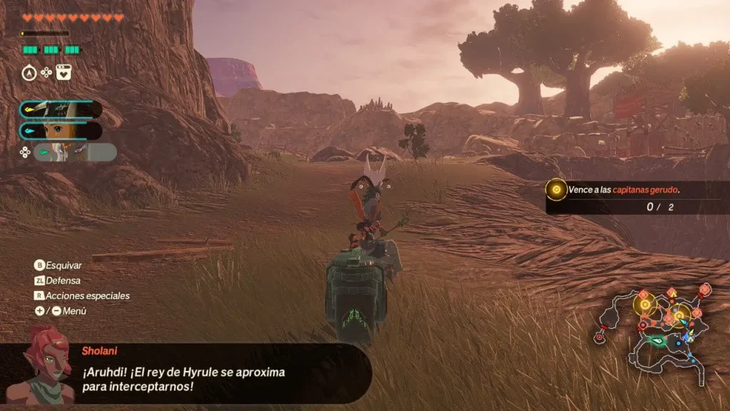Las interfaces del juego funcionan bien y presentan un estilo holográfico muy similar o prácticamente idéntico al de Tears of the Kingdom, hasta el punto de que comparten la forma de desplazarse por los menús, la organización, los sonidos, los iconos y muchos otros elementos. Por ello, si hemos jugado a esta otra entrega, todo el control y movimiento de la interfaz nos resultará familiar y no tendremos sensación de perdernos. Además, están bien adaptadas a los distintos tipos de pantalla, por lo que utilizarlas en modo portátil o en modo TV no supone ningún problema para la lectura de textos, algo que para algunos usuarios puede ser importante.