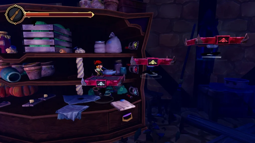 Por otro lado, la flauta también tiene un uso completamente único. Podemos tocar melodías para activar efectos en ciertos momentos clave, como realizar un salto de mucha distancia o combinar varios de estos. Hay toda una gama de melodías esperando a Nai para ayudarla en su cruzada. Al final de cada nivel nos enfrentaremos a un jefe final temático, como un gallo mecánico que atormenta a unas gallinas.