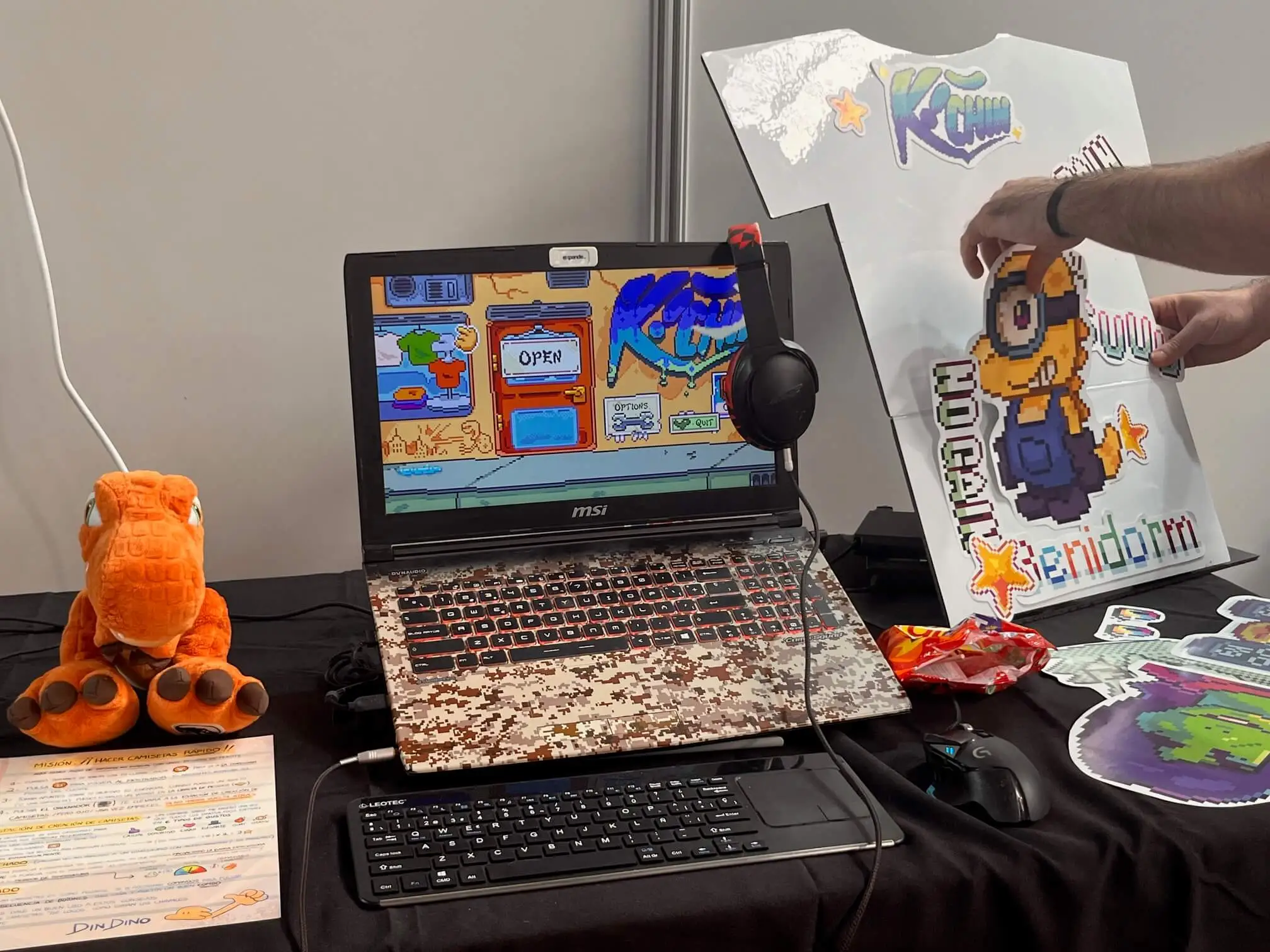La premisa de K!CHIN nos cuenta que Din Dino tiene el papel de gestionar su nueva tienda de personalización de camisetas. Es fundamental escuchar tanto las peticiones como las historias de los clientes, pues la historia se sigue con esta mecánica que nos ha recordado a otros títulos como Coffe Talk. Nos ha gustado mucho la cantidad de personalización que cuentan las camisetas, desde elegir sus colores hasta poder estampar ilustraciones.