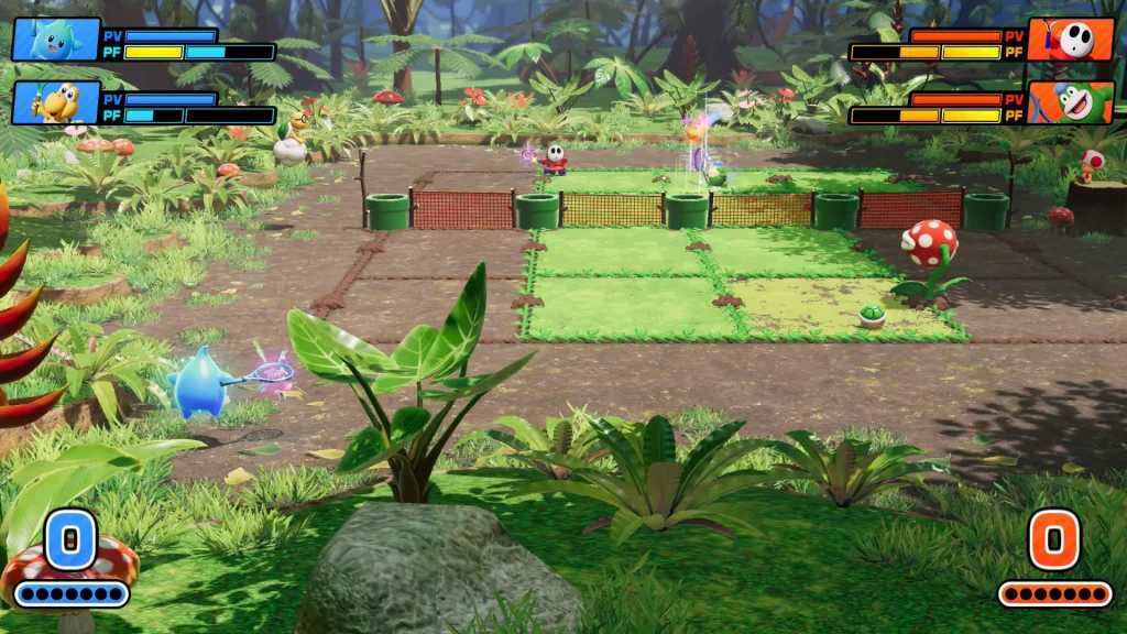 Cada mapa contará con características especiales. En algunos, la bola podrá rebotar más o menos, en otros, los personajes serán más lentos o más rápidos. Además, dependiendo del modo de juego, algunos escenarios incluirán elementos variados, como referencias a Mario Wonder con Plantas Piraña cantando, obstáculos en mitad de la pista dando golpes a nuestros personajes u otros efectos que pueden alterar por completo el transcurso de una partida.