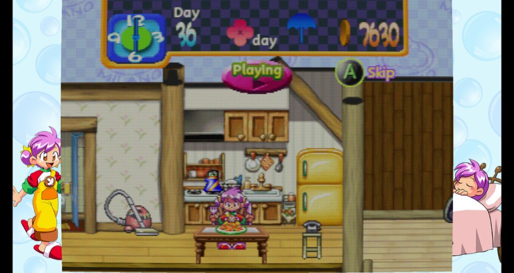 Durante cada uno de los 40 días tendremos una mañana que podremos aprovechar para trabajar en alguno de los distintos trabajos de pueblo, relajarnos en el parque o decorar nuestra casa. Los minijuegos son uno de los principales atractivos. Son muy imaginativos y divertidos, además bastante variados. Una vez realizada una de estas actividades, llegaremos a la tarde. La pasaremos dentro de casa, donde podremos realizar distintas acciones como cocinar, limpiar, o si compramos ciertos muebles, ver la televisión o bailar. Una vez llegada la noche, podremos realizar una segunda acción de la lista anteriormente comentada, y finalmente nos iremos a dormir, donde podremos comprar nuevos muebles (Si, en la cama), leer un libro o ver si tenemos suerte y cruza una estrella fugaz.
