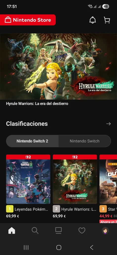 Adicionalmente, también permite consultar periféricos, consolas, mandos y más, ya que cuenta con una integración entre la eShop y la My Nintendo Store en un mismo lugar. Esto resulta muy cómodo para consultar precios o recibir alertas en caso de ofertas temporales.