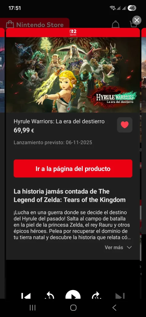 Desgraciadamente, la aplicación no permite realizar compras desde dentro, ya que, al pulsar sobre un producto que nos interese, se nos redirigirá al navegador para completar la compra mediante nuestra cuenta Nintendo.