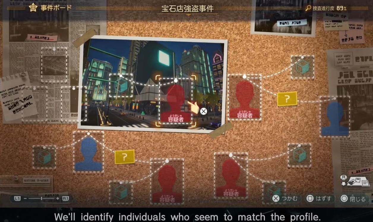 Usando el DECA-Scanner podremos buscar distintas pruebas por el entorno y empezar a interrogar a los testigos hasta descubrir quien oculta la verdad. Una vez tengamos suficiente información y pruebas podremos abrir el «Tablero del caso» donde identificar a los sospechosos que encajen con el perfil y conseguir así relevar la verdad tras el misterio.