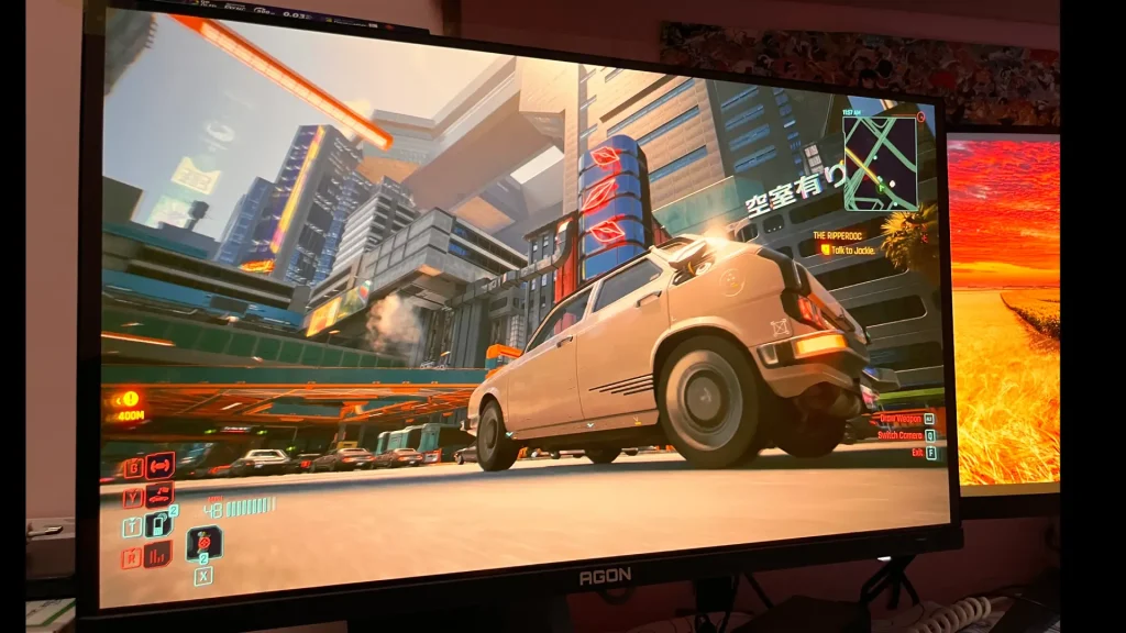 En nuestro caso, pudimos poner a prueba Cyberpunk 2077 con la máxima calidad gráfica y HDR activado. La fluidez y precisión del tiempo de respuesta que ofrece AGON Pro con estos títulos es espectacular. Los brillos de las luces de los coches y los neones de los edificios destacaban mucho más que en un monitor estándar.