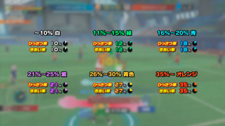 Para hacer más fácil la visualización de cada circunstancia que suceda en un partido, se han añadido iconos e indicadores. Antes del nombre de la técnica a seleccionar, se ha añadido un icono indicando si se trata de un tiro, defensa o regate. Además, se ha añadido un área donde indica el alcance al que se pueden usar las técnicas. Ahora también será más fácil comprender cuando un tiro se puede bloquear o encadenar.