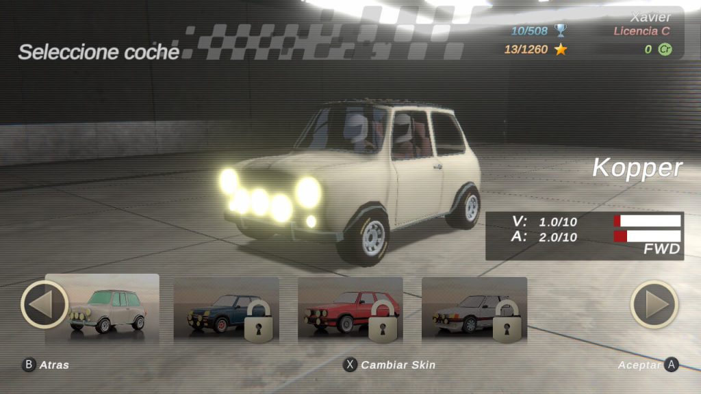 En cuanto a progresión, contamos con una buena disponibilidad de vehículos a comprar que podemos adquirir mediante un sistema de créditos, obtenidos al completar contrarrelojes, circuitos, carreras y desafíos. Cuanto mejores sean los tiempos, mayor será la recompensa. La variedad de coches es amplia, ofreciendo muchas horas de entretenimiento si queremos conseguirlos todos.