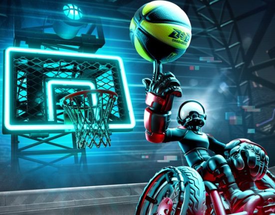 Drag x Drive permite realizar trucos y disfrutar de diversos minijuegos controlando a unos personajes en silla de ruedas dentro de un parque.