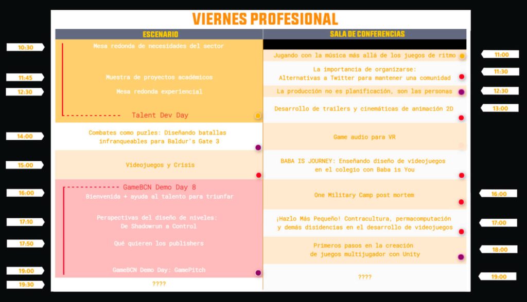 - Día extra dedicado a profesionales de la industria, publishers, prensa, estudiantes y por supuesto videojuegos, con charlas y actividades enfocadas en este público.